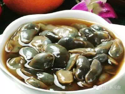 醉泥螺选用本地沿海油泥滩上新鲜泥螺,以红糖、白酒等配料精制而成,入口香甜脆嫩、咸中藏鲜、风味独特,有健脾胃、助消化等功能。为台州人饭桌上的佐酒佳肴。